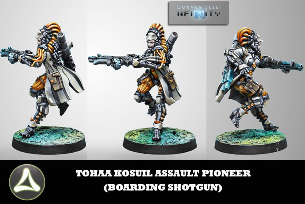 INFINITY TOHAA KOSUIL ASSAULT PIONEERS (Boarding Shotgun) Blister con 1 miniatura in metallo da assemblare e dipingere.