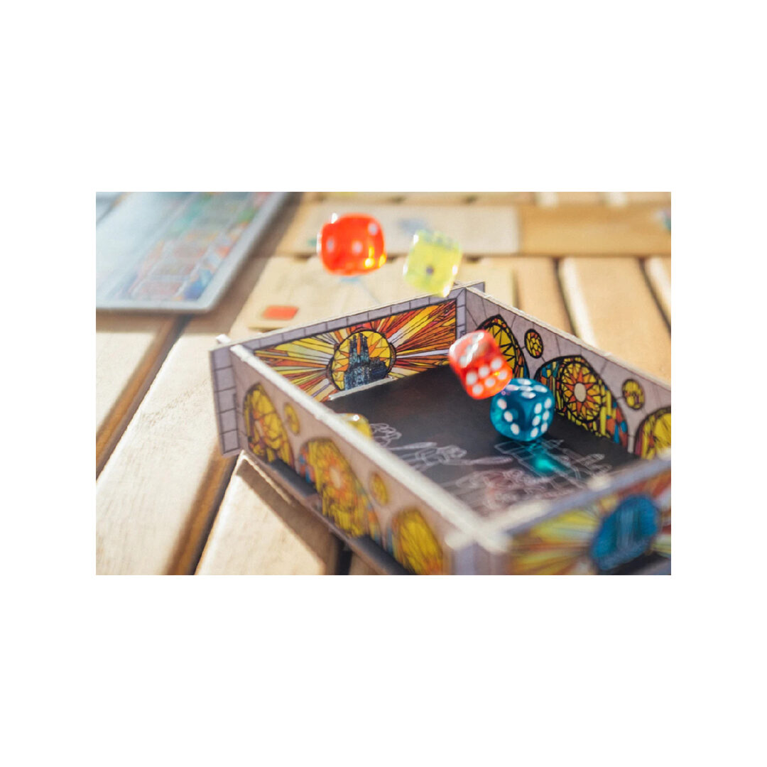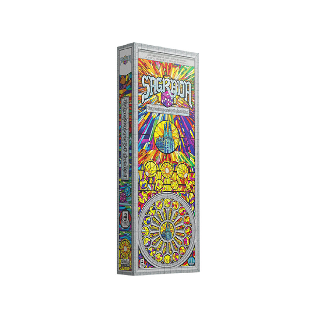 Arricchisci la tua esperienza di gioco con l’espansione per 5-6 Giocatori – Sagrada! Ora puoi goderti ancora di più Sagrada aggiungendo fino a 2 giocatori extra! Questa espansione introduce i tabelloni del Pool Dadi Privato per un gioco fluido fino a 6 giocatori. Include inoltre nuovi obiettivi privati, strumenti e carte schemi finestra. Tavole del Pool Dadi Privato (6) – Nuove regole opzionali utilizzano le Tavole del Pool Dadi Privato per accelerare la fase di selezione. Carte Schema Finestra (6) – Sono simili alle carte schema finestra del gioco base e possono essere combinate con quelle normali. Obiettivi Privati (6) – Introducono un nuovo modo per ottenere punti vittoria. Alla fine del gioco, i giocatori otterranno Punti Vittoria pari alla somma dei valori dei dadi all’interno di spazi specifici nella loro finestra. Carte Strumento (2) – Questi nuovi strumenti permettono ai giocatori di interagire con la loro Tavola del Pool Dadi Privato. Tutte le Carte Schema Finestra, Strumento e Obiettivo Privato dall’espansione sono indicate da un simbolo nell’angolo. Questo articolo è una espansione e richiede il gioco base di Sagrada per essere utilizzato. Come artigiano esperto, utilizzerai astuzia e pianificazione accurata per creare un capolavoro in vetro colorato nella Sagrada Familia. I giocatori si alterneranno nella scelta dei pezzi di vetro, rappresentati da dadi; scegliendo attentamente dove posizionare ciascuno nella loro finestra. Le finestre hanno requisiti unici di colore e tonalità, e dadi simili non possono mai essere adiacenti, quindi posizionare ogni dado è più impegnativo del precedente. Fortunatamente, avrai gli strumenti giusti per aiutarti. Guadagna prestigio adattandoti alle preferenze dei tuoi volubili ammiratori e, naturalmente, aggiungi il tuo tocco artistico completando il tuo capolavoro in vetro colorato nella Sagrada. Draftare dadi e utilizzare gli strumenti del mestiere in Sagrada per costruire attentamente il capolavoro della tua finestra in vetro colorato. COME SI GIOCA A SAGRADA Nel dettaglio, ogni giocatore costruisce una finestra colorata componendo una griglia di dadi sul proprio tabellone giocatore. Ogni tabellone ha alcune restrizioni su quale colore o tonalità (valore) di dado può essere posizionato lì. Dadi dello stesso colore o tonalità non possono mai essere posizionati uno accanto all’altro. I dadi vengono selezionati tramite draft in ordine di giocata, con il primo giocatore che ruota ogni turno, tornando indietro dopo che l’ultimo giocatore ha selezionato due dadi. Il punteggio varia in base al raggiungimento di vari schemi e disposizioni… oltre ai punti bonus per tonalità scure di un particolare colore obiettivo nascosto. Gli strumenti speciali possono essere utilizzati per aiutarti a infrangere le regole spendendo gettoni abilità; una volta usato uno strumento, richiederà poi più gettoni abilità agli altri giocatori per utilizzarli. Dopo 10 round, i giocatori ottengono punti in base agli obiettivi pubblici e privati — il miglior artigiano nella classifica dei punteggi vince. Vince l’artigiano con la finestra più alta nel punteggio! Davvero non ti basta? Scopri tutti gli articoli disponibili per Sagrada! Contenuto 40 Dadi colorati traslucidi 2 Plance Vetrata 6 Carte Schema 2 Carte Utensile 6 Carte Obiettivo 6 Plance Riserva Personale 2 Segnalini Punteggio 12 Segnalini Favore 1 Recinto dei Dadi 1 Regolamento Sleeves 8 63,5×88 6 80×90