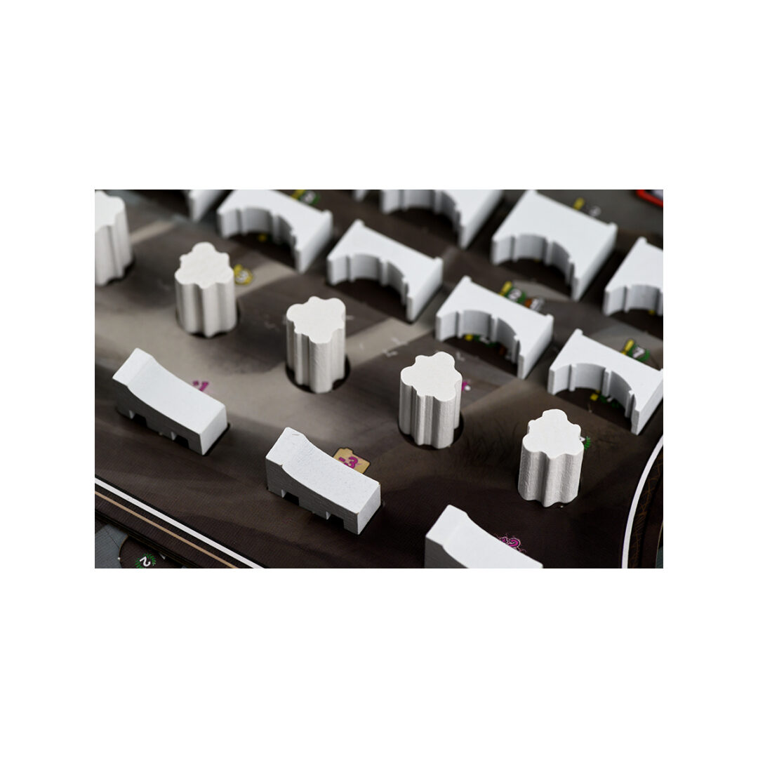 Arricchisci la tua copia di Barrage con una nuova mappa progettata specificamente per 5 giocatori e scopri le nuove connessioni, studiate per consentire nuove strategie di piazzamento senza alterare il flusso di gioco. Questa espansione include: – Regole per 5 giocatori Mappa per 5 giocatori – 1 ruota per il quinto giocatore una piccola bacheca di gestione con azioni aggiuntive un sovrapposizione per l’ordine del turno – un nuovo set di contratti ulteriori macchinari di legno Nota importante: per giocare con 5 giocatori, hai bisogno del gioco di base Barrage e del set del giocatore arancione e della plancia della quinta compagnia da The Leeghwater Project – Barrage. Barrage è un gioco di gestione delle risorse e posizionamento strategico in cui i giocatori competono per costruire le loro maestose dighe, alzarle per aumentare la capacità di stoccaggio dell’acqua preziosa e trasformare tutto il potenziale energetico attraverso gallerie di pressione collegate alle turbine delle centrali elettriche. Ogni giocatore rappresenta una delle aziende internazionali che stanno raccogliendo macchinari, brevetti innovativi e ingegneri brillanti per rivendicare le migliori posizioni per catturare e sfruttare la potenza dell’acqua di una regione alpina contestata attraversata da fiumi. 8 dicembre 1923. La mappa mostra alcuni punti evidenziati in rosso. “Il nuovo territorio sembra promettente, non è vero?”, chiede Marguerite Grant, sorseggiando il suo Bronx. “Tutto questo territorio è perfettamente sfruttabile, potrebbe persino essere migliore del vecchio”, rispondono i suoi ingegneri. Marguerite scruta profondamente gli occhi dei suoi assistenti: “Siete sicuri? Siete stati lì? Le macchine sono in funzione? I condotti sono pieni d’acqua?” “No… ovviamente no, ma i rapporti sono promettenti. Inoltre, il governo sta facendo uno sforzo speciale per aiutarci.” “So esattamente cosa stanno cercando di fare. Vogliono il monopolio dell’energia. È per questo che ci hanno dato accesso a questo territorio. Tutti i nuovi contratti? Un altro loro stratagemma.” Gli ingegneri la guardano fisso: “Pensi sia possibile esercitare un monopolio?” Marguerite scoppia a ridere: “Certo che no. Nessuno può impedire ai nostri concorrenti di raggiungere questo territorio, anche loro. Tuttavia, finché anticipiamo le nostre mosse e il nostro governo mi dà l’opportunità di fare più soldi, perché non approfittare della situazione?!?” Con un gesto deciso della mano, la signora Grant congeda i suoi assistenti, arrotola la mappa e ordina un altro drink. Si ritrova a sorridere mentre pensa: “Questo nuovo territorio è vasto, ma non abbastanza grande per tutti noi…” Davvero non ti basta? Scopri tutti gli articoli disponibili per Barrage! Contenuto 1 Nuova Mappa 9 Tessere Contratto Privato 1 Tessera Contratto Iniziale 1 Tessera Ordine di Turno 5 Giocatori 1 Ruota di Costruzione 1 Plancia Azioni Aggiuntive 6 Crediti Idroelettrici di valore 1 10 Escavatori di valore 1 10 Betoniere di valore 1 Sleeves – Non Previste