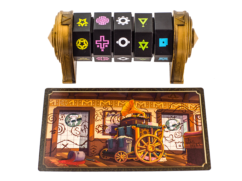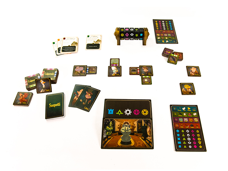 Il Museo di Tuttologia ha bisogno del tuo aiuto! Il prezioso MacGuffin è stato rubato e nel museo sono comparsi degli strani simboli.Cerca i simboli nascosti nelle stanze del museo e selezionali sul decodificatore. Allinea le barre colorate per scoprire se un indizio porta al colpevole.Usa gli indizi per escludere i sospettati, finché ne resta solo uno… E poi arrestalo!Tutto in soli 5 minuti! Contenuto1 decodificatore,28 carte Sospettato,28 tessere Colpevole,16 tessere Indizio,32 carte Scenario,16 carte Fascicolo,4 carte riassuntive,1 regolamento.IdeazioneConnor ReidIllustrazioniCam Kendell