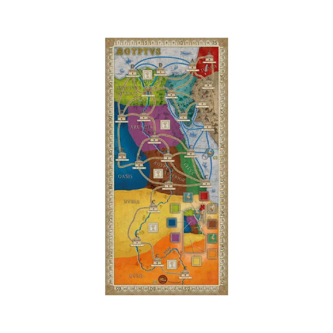 Aegyptus / Creta – Concordia è un’espansione per Concordia che contiene due mappe per nuove sfide strategiche: In Aegyptus, il Nilo e la sua piena annuale portano cibo extra. Puoi anche impegnarti nel commercio con l’incenso o l’oro per sesterzi e punti vittoria alla fine del gioco. In Creta, giochi su una mappa compatta che contiene solo venti città in nove province (una con una sola città). Entrambe le mappe possono essere giocate con qualsiasi numero di giocatori, ma diventano molto competitive con quattro e soprattutto con cinque giocatori. Le mappe hanno anche un nuovo formato, leggermente più lungo, ma chiaramente più piccolo rispetto alle mappe pubblicate in precedenza. Il display a doppia faccia per le carte personalità è separato dalla mappa e contiene un lato con costi aggiuntivi diversi. Questo articolo è una espansione e richiede il gioco base Concordia per essere utilizzato. Davvero non ti basta? Scopri tutti gli articoli disponibili per Concordia! Contenuto 1 Mappa fronte retro Sleeves – Non Previste