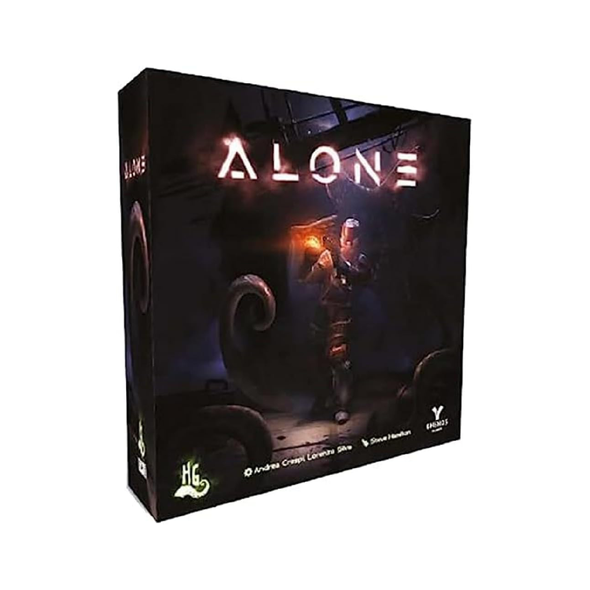 Alone è un gioco horror survival asimmetrico per 2 -4 giocatori. Un giocatore controlla l’eroe e avrà una quantità limitata di tempo per completare le missioni mentre esplorerà una mappa piena di pericoli e trappole che viene rivelata solo un po’ alla volta. Fino a 3 giocatori aggiuntivi controllano le forze del Male, tramando dietro il loro schermo contro l’Eroe. Possono vedere l’intera mappa in ogni momento, controllano tutte le creature in agguato nell’oscurità e possono sfruttare le loro carte per reagire alle scelte dell’eroe, con l’obiettivo finale di ucciderlo. Un gioco asimmetrico con ambientazione horror sci-fi e dungeon crawler allo stesso tempo, che pone un singolo eroe contro 1-3 avversari del male. Questi ultimi faranno di tutto per bloccare le missioni dell’eroe evitando che possa salvare i propri compagni. I giocatori Cattivi hanno sempre davanti a loro l’intera mappa dello scenario, nascosta dietro un enorme schermo. Gestiscono tutti gli eventi che si verificano durante il gioco e cercano di impedire all’eroe di completare i suoi obiettivi. L’eroe può vedere solo il Settore della mappa in cui si trova e da lì dovrà esplorare la mappa. Ogni tipo di orrore potrebbe nascondersi nell’oscurità, quindi dovrà essere cauto. Alla fine di ogni round, le porzioni della mappa esplorate saranno rimosse dal tavolo: solo il Settore in cui si trova rimarrà visibile… l’eroe dovrà mettere alla prova la sua memoria se non vuole perdersi! La storia del gioco si svilupperà attraverso diversi scenari, ognuno diviso in vari capitoli. Ogni capitolo ha un obiettivo per l’eroe da completare, mentre i giocatori Cattivi dovranno fermarlo (o cercare di realizzare un obiettivo diverso). L’esito di ciascun capitolo influenzerà il gameplay di quello successivo: ogni scenario è concepito con una trama ramificata che può adattarsi alle azioni dei giocatori: se l’eroe completa i suoi obiettivi, la sua vita sarà più facile nel capitolo successivo… ma lo stesso vale anche per i giocatori Cattivi! “Anno 2417. Dopo la scoperta della tecnologia di contrazione spaziale ORCS, che permette a specifiche stazioni spaziali di comprimere l’enorme vuoto dello spazio agendo come una sorta di “portale stellare” consentendo alle navi di viaggiare attraverso un arco di anni luce in pochi istanti, l’umanità ha passato l’ultimo paio di secoli a colonizzare nuovi pianeti. Molte nazioni della Terra si sono evolute in potenze coloniali spaziali multi pianeta. Il Commonwealth, la Federazione Coreana e l’Impero Portoghese sono stati tra i primi ad avere un appoggio stabile fuori dal Sistema Solare, ma nelle ultime decadi più nazioni hanno ampliato i loro possedimenti spaziali, nella corsa al controllo di nuovi pianeti inesplorati per estrarre minerali e acqua. Nelle remote profondità dello spazio, la OICS Bravery, una nave del Commonwealth della flotta della Compagnia delle Indie Esterna, è naufragata su un pianeta sconosciuto nella sua rotta verso la colonia portoghese di Nova Maputo, nel sistema Delta Corvi. Dopo lo schianto, un naufrago membro della ciurma della Bravery, si è risvegliato in una colonia abbandonata, SOLO. Orrori indicibili si annidano nel buio, in attesa. Senza alcuna idea di dove si trovino i suoi compagni, armato solo di pochi attrezzi e del proprio ingegno, questo eroe non intenzionale dovrà combattere per la propria vita. ALONE™ non è il tuo solito gioco di esplorazione di dungeon. Uno dei giocatori controlla l’ Eroe , un vagabondo spaziale che esplora una mappa sconosciuta piena di pericoli , provando a completare missioni , mentre fino a 3 menti del Male tramano nelle tenebre, cercando di ucciderlo. In base a quale fazione scegliete, il gameplay è ocmpletamente differente . L’Eroe può vedere solamente fino a quanto glielo permette la sua torcia, solamente pochi settori della mappa alla volta . Solo e abbandonato, con la propria vita costantemente minacciata, dovrà stare attento ad ogni passo. Raccogliere indizi e schivare trappole è spesso più importante che lottare . Dall’altra parte, nascosti dietro il proprio schermo , i giocatori del Male possono vedere tutto . Per loro l’intera mappa è sempre disponibile , in qualsiasi momento. Possono usare carte per generare e muovere creature mostruose e piazzare trappole insidiose, tutto per rendere la vita dell’Eroe il più difficile possibile” Davvero non ti basta? Scopri tutte le espansioni di Alone! Contenuto 1 Plancia Eroe 1 Schermo del Male 8 Dadi 2 Plance Mappa 12 Carte 28 Carte 1 Bussola 10 Porte con supporti 1 Segnalino Leader del Male 100+ Segnalini 30+ Tessere 3 Regolamenti Sleeves 129 63,5×88 28 80×120