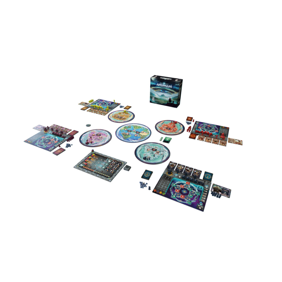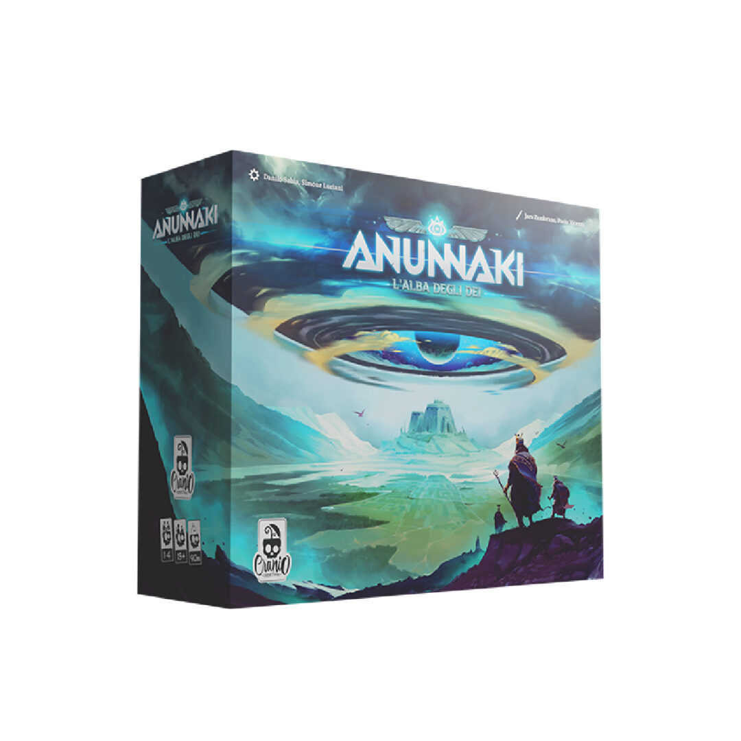 Anunnaki – L’Alba degli Dèi è un gioco 4X, ambientato in un passato distopico dove mitologia e fantascienza si uniscono. Ogni giocatore rappresenta una Casata i cui rappresentanti sono visti come divinità dalla popolazione terrestre. Costruite insediamenti, reclutate seguaci, esplorate pianeti per ottenere risorse dai territori che controllate, sviluppate la vostra tecnologia, siglate contratti commerciali, sconfiggete le armate locali e gli eserciti degli avversari, e infine cercate di conquistare Atlantide e i suoi immensi tesori. Il gioco propone un innovativo sistema di selezione delle azioni: una plancia a forma di stella con una diversa azione ad ogni intersezione. Proverete a seguire il cammino sulla stella per mettere velocemente in gioco le vostre divinità oppure selezionerete le azioni nell’ordine più conveniente per meglio sviluppare la vostra civiltà? Ogni scelta è importante e può condurre a una vittoria memorabile… o ad una terribile disfatta! Con una grande varietà di elementi di gioco, come le fazioni con abilità uniche, il setup casuale delle azioni sulla stella e un bassissimo impatto della fortuna, Anunnaki – L’Alba degli Dèi rappresenta un’esperienza incredibilmente immersiva e profonda. La tua antica civiltà aliena sta abbandonando il pianeta morente alla ricerca di una nuova patria. La terra promessa è rappresentata da Gaia, sede della magnifica civiltà umana di Atlantide. Ma attenzione, altre Case (fazioni) della tua civiltà hanno lo stesso obiettivo e solo una potrà dominare Gaia! Anunnaki – L’Alba degli Dèi è un gioco eurogame 4x di Simone Luciani e Danilo Sabia, ambientato in un antico passato distopico, dove mitologia e fantascienza si incontrano. Ogni giocatore rappresenta una diversa Casa i cui regnanti sono considerati dalla popolazione terrestre come dei. I giocatori costruiscono basi, reclutano truppe, incarnano dei, esplorano il territorio, sviluppano la propria tecnologia, firmano contratti commerciali, sconfiggono dominazioni locali e gli eserciti degli altri giocatori, cercando di conquistare Atlantide, che possiede immensi tesori. Diverse azioni forniscono un certo numero di Punti Vittoria immediati. Inoltre, obiettivi casuali forniranno ricompense di Punti Vittoria considerevoli alla fine del gioco, basati su condizioni specifiche. Alla fine, il giocatore con il maggior numero di PV sarà il vincitore. Oltre ad avere una forte dose di controllo (il fattore fortuna è minimo), il gioco presenta un innovativo sistema di selezione delle azioni a stella che confronta i giocatori con scelte interessanti: i giocatori possono reincarnare i propri dei eseguendo le azioni in una precisa sequenza, su percorsi predefiniti della loro plancia giocatore a stella, oppure possono rinunciare ad alcuni dei, saltando liberamente da un’azione all’altra della loro plancia, per scegliere di volta in volta le azioni migliori in base alla situazione.