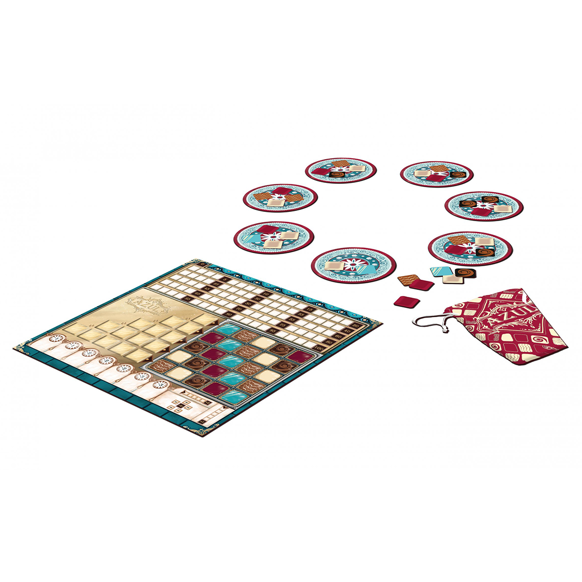 Unitevi ai migliori cioccolatai del mondo per comporre la più ambita selezione di cioccolatini! Azul – Maître Chocolatier è un’edizione a tiratura limitata di Azul, il gioco pluripremiato e campione di vendite! Come in Azul, dovrete prendere le tessere dal centro del tavolo per riempire, il più possibile, la vostra plancia, che rappresenta, in questa versione, una scatola di cioccolatini. Lo svolgimento del gioco è analogo:– presa delle tessere che rappresentano i cioccolatini e posizionamento sulla parte sinistra della propria plancia personale per completare una riga dello stesso colore;– posizionamento di un cioccolatino sul proprio spazio se la riga è stata completata;– preparazione del round successivo con il posizionamento di nuove tessere per la presa. La partita termina quando un giocatore ha completato una linea orizzontale nella propria scatola dei cioccolatini. Oltre ai punti ottenuti durante la partita, i giocatori ottengono punti anche per linee orizzontali, verticali complete e posizionamento di 5 cioccolatini dello stesso colore. Vince il giocatore con il punteggio più altro. Maître Chocolatier ha anche una variante. Girate le tessere vassoio: esse sono di 5 tipi diversi e influenzano la preparazione del gioco o il round che state giocando. Illustrazioni: Chris Quilliams e Nina Allen