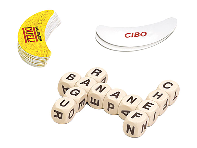 Bananagrams Duel è il gioco di parole che trasforma l’originale Bananagrams in un’esperienza perfetta per due giocatori, da portare sempre con sé: la soluzione perfetta quando si ha poco tempo, o poco spazio!1. Sfida un avversario nel creare una griglia di parole, usando tutti i tuoi dadi Lettera.2. Sei stato il più veloce? Ottieni una carta Banana3.Il primo che ottiene 10 carte Banana vince!Le carte Banana sono delle divertenti carte argomento a forma di banana che possono essere rivelate, una alla volta, all’inizio di una mano… per sfide ancora più avvincenti Contenuto 24 Dadi Lettera 20 Carte Argomento Sleeves ? In Aggiornamento