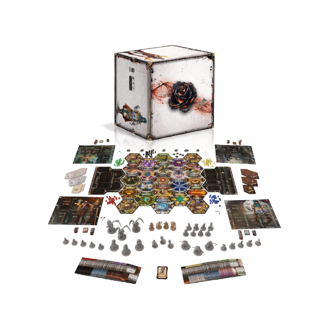 Black Rose Wars è un gioco fantasy competitivo di deck-building, strategia e combattimento, ambientato nel frenetico universo di Nova Aetas. Ogni giocatore è un potente mago dell’Ordine della Rosa Nera che aspira a diventare il nuovo Gran Maestro, allo scopo di conquistare il potente potere dell’Artefatto Rosa Nera e della Magia Dimenticata. Ogni mago ha sei scuole di magia a sua disposizione, ognuna con la sua strategia per annientare i nemici e accrescere il proprio potere. Quando inizia la partita, i Maghi si trovano nelle loro Stanze per la meditazione (Celle) all’interno della Loggia della Rosa Nera. Dovranno usare i loro poteri per farsi strada nella Loggia e affrontare la Rosa Nera stessa per entrare in possesso dei suoi poteri. Ogni Mago ha a disposizione un Grimorio formato da carte di diverse scuole di Magia per annientare i suoi avversari e accrescere il suo potere. Durante la battaglia i Maghi incrementano il loro grimorio attingendo incantesimi dalle sei scuole di Magia. Il Mago che avrà accumulato più potere alla fine della battaglia, sarà incoronato dalla Rosa Nera come degno successore e Gran Maestro dell’Ordine. Black Rose Wars è un gioco da tavolo che ti condurrà nel mondo di Nova Aetas. La loggia Black Rose si riunisce per determinare chi sarà il nuovo Magister, il custode della magia dimenticata. I maghi più potenti affiliati alla loggia si confronteranno in una serie di epiche e avvincenti battaglie, sfruttando i poteri arcani in loro possesso. L’evento, che determina il destino della loggia ogni dieci anni, si svolgerà nelle stanze della residenza della Rosa Nera. In Black Rose Wars, ciascun giocatore utilizza la magia per raccogliere Punti Potere uccidendo gli altri maghi, distruggendo le stanze della loggia, rendendole instabili o completando missioni personali. All’inizio del gioco, ogni mago inizia con carte magia selezionate da una scuola di sua scelta. Ogni scuola di Black Rose Wars contiene incantesimi diversi e unici, che portano a diverse strategie di vittoria. Ogni scuola, come Divinazione e Trasmutazione, ha diversi tipi di incantesimi che forniscono al mago diverse strategie per diventare il mago più potente. INCANTAMENTI La caratteristica peculiare degli incantesimi di Black Rose Wars è che ognuno di essi è composto da due effetti differenti. Sta ai maghi sceglierne uno mentre preparano il loro turno. Lo stesso incantesimo può avere due effetti possibili, offrendo al mago la possibilità di utilizzare l’incantesimo nel modo più efficace possibile, a seconda della situazione in cui si trovano. Distruzione, Necromanzia, Divinazione, Trasmutazione, Cospirazione e Illusione sono solo 6 delle principali scuole su cui si fonda l’Ordine della Rosa Nera, pietre angolari per i futuri maestri che saranno impersonati dai giocatori nella battaglia per diventare il nuovo Sommo Magistro. MINIATURE In Black Rose Wars ci siamo davvero concentrati sull’aspetto delle miniature e abbiamo curato tutti i piccoli dettagli. Un team di modellatori esperti ha realizzato incredibili miniature, e altre sono in arrivo…vedi anche il Miniature Set Brute Force! CARTE Le carte degli incantesimi rappresentano un componente chiave nell’esecuzione del gioco. Ogni mago, oltre a iniziare con un set di 6 incantesimi nel suo Grimorio, pesca incantesimi durante tutto il gioco per perfezionare la propria strategia e diventare il nuovo Gran Maestro dell’Ordine. MAGHI Tessa, la Fauna delle foreste umbre, manipolerà la forza della natura per sopraffare i suoi rivali. Nero, un mago di Roma dalle nobili origini, è pronto a scatenare la sua magia distruttiva su coloro abbastanza coraggiosi da sfidarlo. Jaf’ar Ibn Al-Shatir, il saggio astronomo dell’Arabia che legge il futuro e il passato per sconfiggere i suoi avversari non in combattimento. Rebecca, una maga di Salento e proveniente dal mondo di Nova Aetas, userà le sue abilità per riportare in vita i morti e servire la causa della loggia. Davvero non ti basta? Scopri tutti gli articoli disponibili Black Rose Wars!
