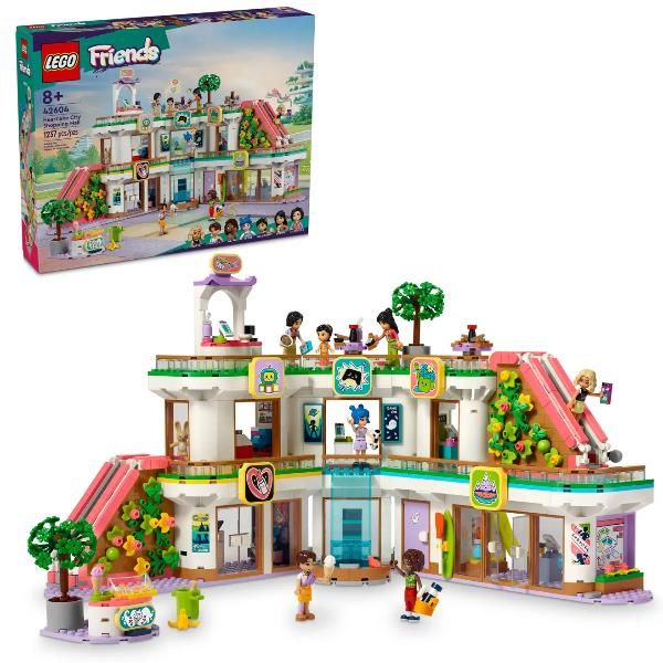 Centro commerciale di Heartlake City Incoraggia il gioco di fantasia dello shopping con il playset Centro commerciale di Heartlake City LEGO® Friends (42604) per bambini dagli 8 anni in su. Questo giocattolo per bambini include 7 personaggi per ispirare il gioco di ruolo creativo e stimolare lo sviluppo delle competenze sociali dei bambini. C’è tantissimo da scoprire mentre i bambini assemblano i 3 piani del centro commerciale con negozi dedicati a prodotti di bellezza, giocattoli, videogiochi, fiori e attrezzature per attività all’aperto. E la costruzione è solo l’inizio! Questo kit di costruzione è ricco di funzionalità per ispirare storie di amicizia mentre i bambini aiutano i personaggi a esplorare i negozi e a scegliere le loro cose preferite. Questo giocattolo contiene i dettagli di un vero e proprio centro commerciale per deliziare i piccoli clienti, come un ristorante di noodle, un chiosco di gelati, un bancomat, una