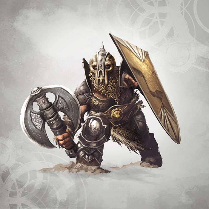 Quando altri eserciti richiedono coscritti o arruolamento casuale, i Nani Aurium mantengono un esercito professionale, con un equipaggiamento standardizzato di qualità. Questa è la differenza tra avere una raffazzonata banda di combattenti, guerrieri e attaccabrighe da taverna e unità di soldati professionisti. I soldati Aurium sono addestrati a condurre la guerra in due modi, ma hanno sempre un’arma affidabile e un’armatura perfetta.