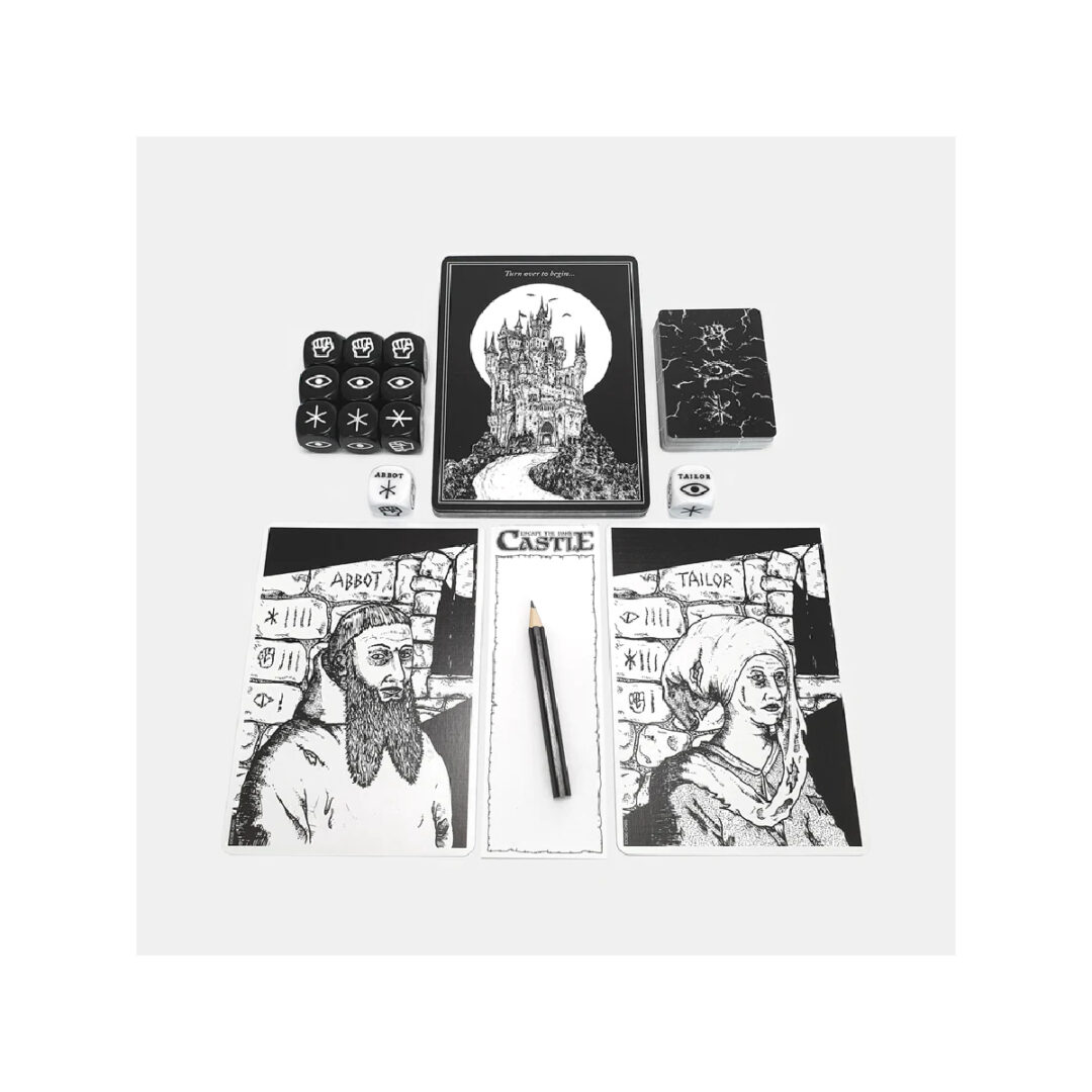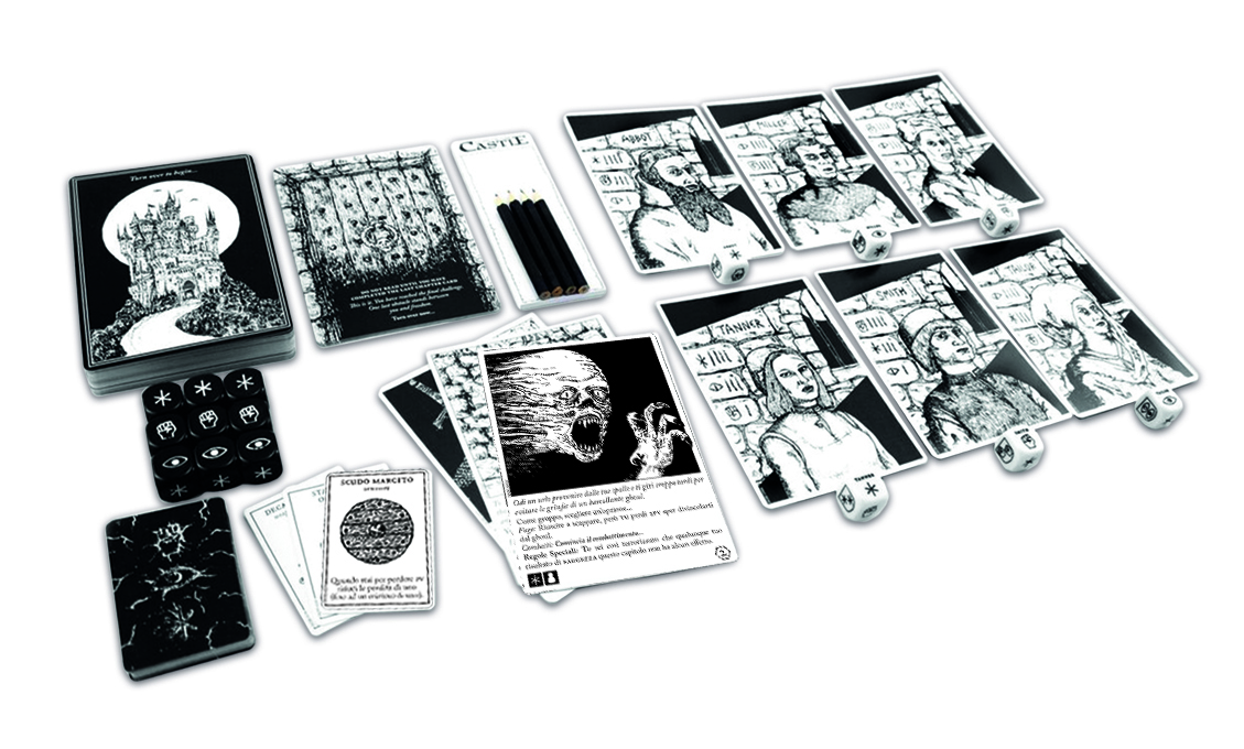 Escape the Dark Castle gioco da tavolo di sopravvivenza! Benvenuto, prigioniero in…Escape the Dark Castle gioco di avventura fantasy cooperativo e dal sapore retrò per 1 -4 giocatori con una particolare attenzione perfetto per coloro che si avvicinano per le prime volte al gioco da tavolo. Richiede 2 minuti per essere intavolato, dura circa 30 minuti e ogni castello è generato in maniera casuale di modo che non vi siano mai due partite uguali. Le regole del gioco Escape the Dark Castle sono semplici. Potrete iniziare a giocare in 5 minuti e imparare giocando. Un solo avvertimento nonostante la sua natura semplice questo gioco è subdolo e vi sconfiggerà spesso! Se fallite, provate di nuovo speriamo che vi divertirete comunque a esplorare il castello ogni volta, indipendentemente dal risultato. SCOPO DEL GIOCO ESCAPE THE DARK CASTLE Nel gioco da tavolo Escape the Dark Castle siete ingiustamente incarcerati nelle profondità del Castello Oscuro, tu e i tuoi compagni prigionieri vi imbarcate in una disperata ricerca di una via di fuga. Sia che si tratti dell’Abate, del Sarto o di uno qualsiasi dei sei personaggi giocabili, ogni prigioniero è rappresentato da una carta personaggio e da un dado personalizzato che mostra l’unico insieme di Forza, Astuzia e Saggezza del prigioniero: i tre tratti del gioco. Il Castello è però un luogo infido, pieno di orrori, trappole e sfide ognuna delle quali è rappresentata nel gioco da una grande e meravigliosamente illustrata Carta Capitolo. Obiettivo del gioco da tavolo Escape the Dark Castle è quello di riuscire a superare gli eventi di ogni carta garantendo la sopravvivenza del gruppo. Se lo farete, tutti voi riuscirete a fuggire dal Castello Oscuro vincendo il gioco. Tuttavia, se qualcuno dovesse perire nel tentativo, il gioco terminerebbe immediatamente e dovreste riprovare! COME SI GIOCA A ESCAPE THE DARK CASTLE Nel gioco da tavolo Escape the Dark Castle i giocatori devono lavorare insieme utilizzando dadi personalizzati e carte oggetto per superare gli orrori, le trappole e le sfide del castello, ognuno dei quali è rappresentato da una grande e illustrata carta capitolo. All’inizio di ogni partita, 15 di queste carte capitolo vengono estratte casualmente da un mazzo più ampio per creare un castello unico ogni volta. Il gameplay del gioco Escape the Dark Castle coinvolge un giocatore che rivela una nuova carta capitolo ogni turno, in un movimento simile a girare una pagina di un libro. Quando una carta viene girata, viene rivelata la prossima stanza o passaggio nel quale i prigionieri sono incappati. Non c’è un ordine di turno. Invece, i giocatori decidono come gruppo chi girerà la prossima carta capitolo, e spesso ci sono conseguenze raccapriccianti per chi lo fa! Una volta rivelata, la carta capitolo spiegherà la situazione di fronte al gruppo e cosa dev’essere fatto per superarla. Nello stile delle avventure scegli-tu-la-strada, la maggior parte dei capitoli offre al gruppo una scelta su come procedere. Corrompere le guardie ubriache o attaccarle? Affrontare la bestia o attirarla fuori? Rubare dalle provviste della cucina o continuare a muoversi? Ogni capitolo del gioco Escape the Dark Castle è un mini-gioco e sono richiesti una varietà di meccanismi per completarlo, dai test di abilità in stile RPG per un personaggio singolo, al lancio di dadi push-your-luck come squadra, fino al gioco di carte oggetto raccolte lungo il percorso per potenziare le abilità tattiche del gruppo. Quando i giocatori scelgono di affrontare (o non riescono ad evitare) il combattimento, tutti i giocatori lanciano simultaneamente i loro dadi personalizzati per effettuare un attacco contro il nemico. Devono riunire collettivamente la giusta combinazione di Forza, Astuzia e Saggezza per sconfiggere il nemico in questione, altrimenti rischiano di subire danni. Bloccare, Riposare e l’uso di Armi, Reliquie e Pozioni aiuteranno a mantenere in vita i prigionieri. L’obiettivo del gioco da tavolo Escape the Dark Castle è per il gruppo di completare ogni capitolo nel mazzo del castello, quindi sconfiggere il boss finale. Per vincere, devono mantenere in vita ogni membro del team: se un giocatore viene ucciso, il gioco termina immediatamente. Man mano che queste coinvolgenti carte capitolo vengono rivelate una dopo l’altra, Escape the Dark Castle gioco da tavolo si trasforma in un’esperienza condivisa di narrazione, con i giocatori che prendono decisioni su cosa fare ogni capitolo mentre si avventurano in una disperata missione per fuggire. Per vincere, devi mantenere tutti vivi: se un prigioniero viene ucciso, la partita termina immediatamente. Davvero non ti basta? Scopri tutti gli articoli disponibili per Escape The Dark Castle!