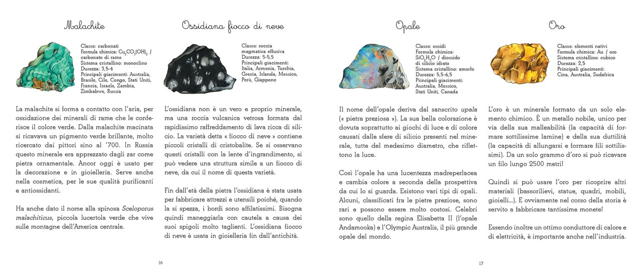 Opale, oro, pirite, rubino, topazio… Tuffandosi nell’universo dei minerali attraverso la pedagogia Montessori, il bambino scoprirà i segreti di 20 pietre affascinanti: le loro origini, le proprietà, le formule chimiche, ma anche l’utilizzo che nel corso dei secoli le varie civiltà hanno fatto di questi tesori. Questo cofanetto contiene: 1 ametista e 1 lapislazzuli, 63 immagini classificate, 1 libretto per scoprire i minerali nei dettagli e condurre semplici esperimenti e 1 taccuino del mineralogista su cui il bambino può annotare le sue osservazioni. Età di lettura: da 7 anni.