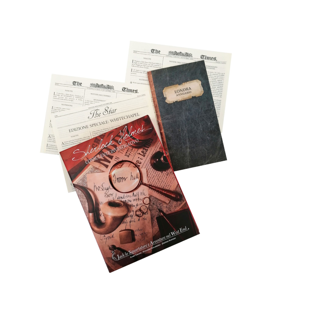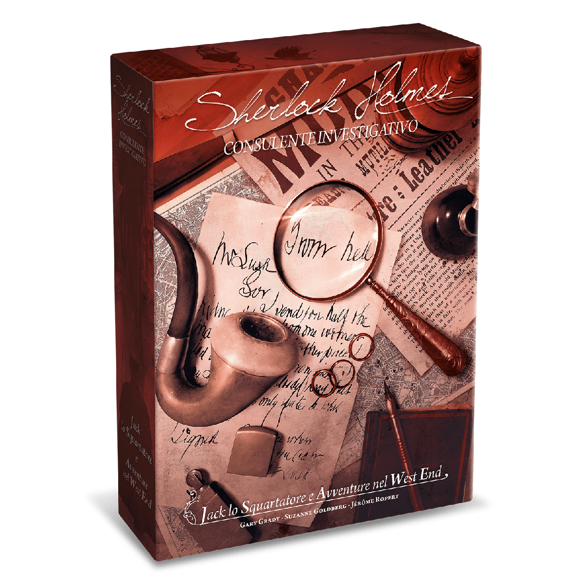 Jack Lo Squartatore e Avventure nel West End espansione standalone di Sherlock Holmes Consulente Investigativo con grafica aggiornata che presenta dieci casi da risolvere nella Londra vittoriana dell’Inghilterra di Sherlock Holmes. Un “London Directory”, una mappa e archivi di giornali sono inclusi con i casi. Sono inclusi sei casi indipendenti Avventure nel West End (ridisegnati e aggiornati dall’espansione del 1995) e una serie di quattro nuovi casi basati sugli omicidi di Jack lo Squartatore. Sherlock Holmes Consulente Investigativo gioco collaborativo dove i giocatori cercano di risolvere dei casi misteriosi intervistando i sospettati, consultando i giornali e aggirandosi per le strade in cerca di indizi. (Questa non è un’espansione, ma un gioco acquistabile e giocabile separatamente) Nello specifico, in Jack Lo Squartatore e Avventure nel West End – Sherlock Holmes Consulente Investigativo affronteremo i nostri casi all’interno di due differenti “filoni narrativi”: Jack lo Squartatore Alcune donne sono state assassinate nel quartiere di Whitechapel e le autorità brancolano nel buio. Il misterioso omicida è stato soprannominato Jack lo Squartatore dalla stampa dell’epoca. Riuscirete a smascherarlo prima che lo faccia Sherlock Holmes? Scoprite 4 casi giocabili come una storia unica.Mary Ann Nichols Annie Chapman Elizabeth Stride, Catherine Eddowes Mary Jane Kelly Avventure. Avventure nel West End Il quartiere West End di Londra è stato teatro di numerosi omicidi e Scotland Yard fatica a risolverli. Riuscirete ad aiutare Sherlock Holmes a risolvere questi misteri? Scoprite 6 nuovi casi autonomi e mettete alla prova le vostre capacità investigative! Il Curioso Caso del Dottor Goldfire – L’Omocidio di Sherlock Holmes – Un Caso di Identità – La Morte di un Conte Transilvano Un Intrigo Reale al Savage Club Un Semplice Caso di Omicidio. SCOPO DEL GIOCO SHERLOCK HOLMES CONSULENTE INVESTIGATIVO Voi interpreterete i membri della banda ufficiosa degli “Irregolari di Baker Street”, una squadra formata dal famoso Sherlock Holmes per tenersi informato su ciò che si diceva in città e per o ottenere aiuto nelle indagini più misteriose. Questa scatola contiene dieci casi misteriosi che spetterà a voi risolvere. Per ogni caso avrete una serie di piste da seguire, una mappa di Londra, un annuario e i giornali locali. Avrete inoltre una lista di informatori contenente i nomi di persone molto qualificate che vi assisteranno nelle ricerche (medico legale, criminologo, fonti, …). Armati di tu i questi elementi e della vostra immaginazione, camminerete per le strade di Londra alla ricerca di indizi che vi permetteranno di risolvere l’enigma e di rispondere a una serie di domande sul caso. Ovviamente, niente è mai semplice come sembra e dovrete dimostrare la vostra astuzia se non volete essere messi in ridicolo durante il faccia a faccia finale con Holmes! Riuscirete a superare il maestro? Risolvete 10 misteri ambientati nella Londra Vittoriana! Quando avete finito la vostra indagine, confrontate il vostro punteggio con quello del più famoso investigatore del mondo: Sherlock Holmes! COME SI GIOCA A SHERLOCK HOLMES CONSULENTE INVESTIGATIVO Leggete l’introduzione al caso e seguite le piste. Volete parlare con la sorella della vittima? O recarvi sulla scena del crimine? Andate al paragrafo relativo e leggete. Potete avvalervi dell’annuario e della mappa di Londra, ma anche dei quotidiani locali che nascondono diverse informazioni. Segnate ogni tappa che percorrete. Meno paragrafi leggerete per risolvere il caso, più punti potreste fare. Ma sarete mai in grado di battere…il Maestro? Quando credete di avere la situazione chiara, leggete le domande sul caso e provate a rispondere! Davvero non ti basta? Scopri tutti gli articoli disponibili per Sherlock Holmes Consulente Investigativo! Contenuto 2 Mappe (Londra e Whitechapel) 10 Libretti dei casi 10 Giornali 1 Annuario 1 Regolamento Sleeves – Non Previste