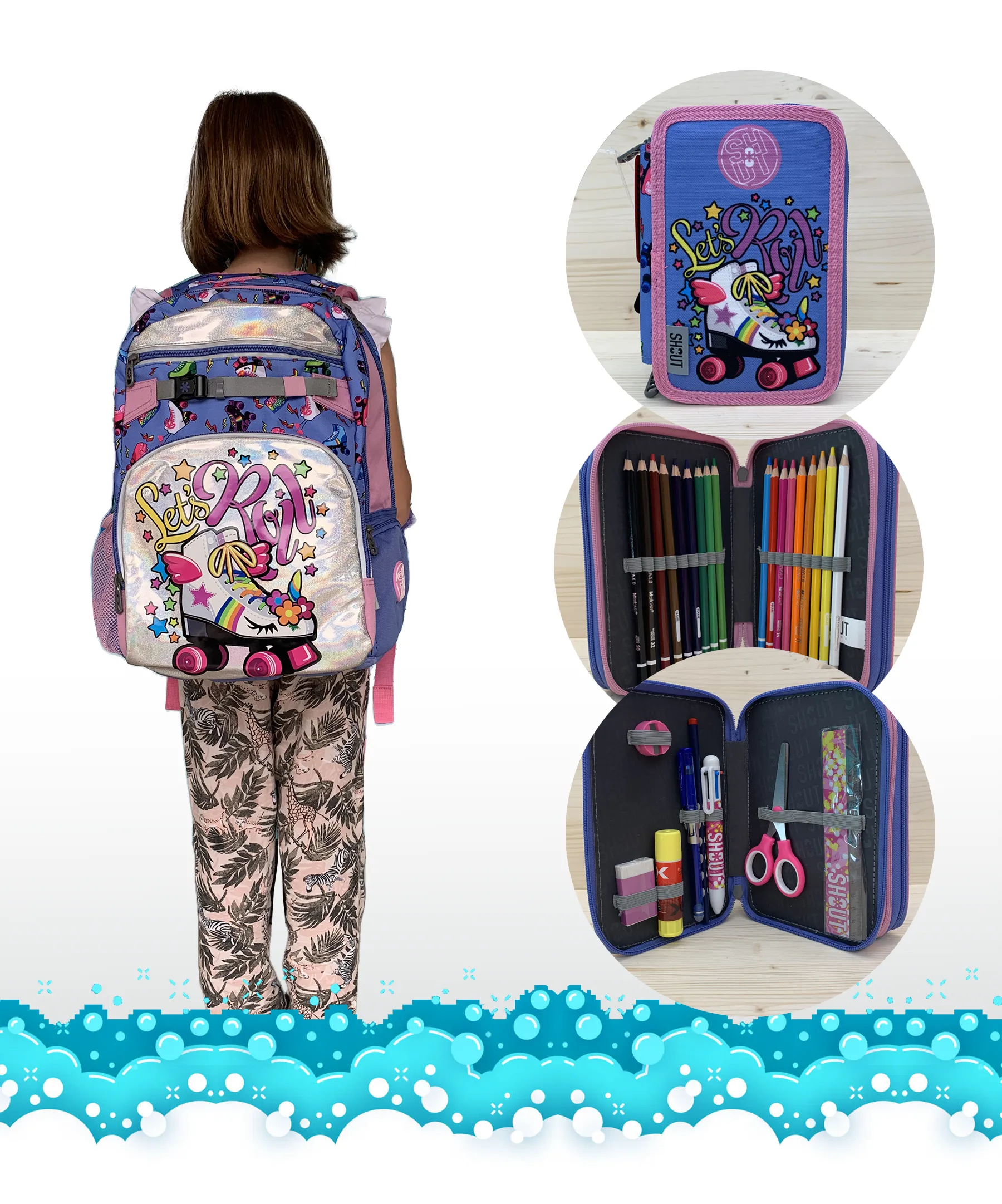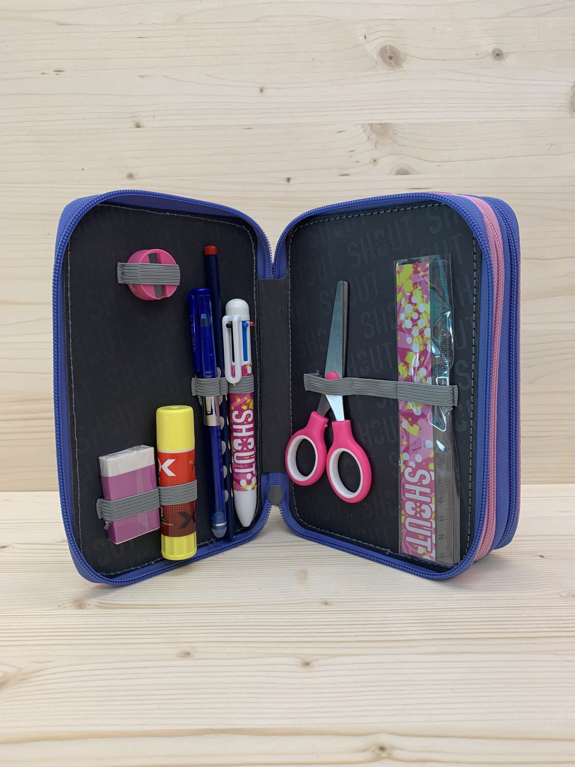 Kit con: Zaino Shout + astuccio 3 zip completo di cancelleria