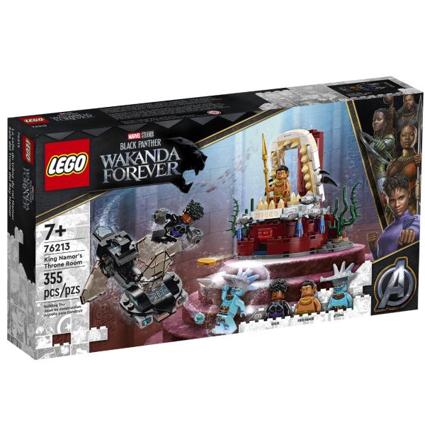 Un’immersione di azione e fantasia attende i giovani supereroi dai 7 anni in su nel set La stanza del trono di Re Namor LEGO® (76213). Avventure sottomarine per i fan di Black PantherL’elegante e raffinata riproduzione del sottomarino Skirmisher del film Black Panther: Wakanda Forever Marvel Studios è dotata di shooter che i bambini possono sparare mentre combattono il malvagio Attuma. Alla fine del viaggio in sottomarino, scopriranno il Tempio di Re Namor e la sala del trono del re decorata con alghe. Al termine della missione, i bambini tornano al sottomarino e partono per la prossima di molte altre avventure sottomarine. Il set include 3 minifigure di Shuri, Attuma e Re Namor insieme alle fantastiche armi e accessori. Informazioni di sicurezza sul prodotto