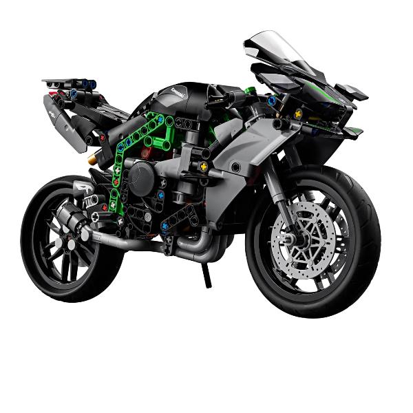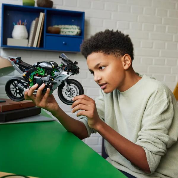 Motocicletta Kawasaki Ninja H2R Ispira i bambini a esplorare l’ingegneria e la tecnologia con la Motocicletta Kawasaki Ninja H2R LEGO® Technic (42170) giocattolo per bambini dai 10 anni in su. Questo set costruibile per i bambini e le bambine ricrea fedelmente i dettagli di una delle motociclette di serie più veloci al mondo: la Kawasaki Ninja H2R.Questo modellino di motocicletta in scala 1:8, fantastico regalo per bambini, è dotato di sterzo, sospensioni, cambio a 2 velocità, motore articolato a 4 pistoni e turbocompressore. Lo speciale elemento del parabrezza presenta decorazioni personalizzate e il logo Kawasaki è posizionato su entrambi i lati del serbatoio del carburante. I bambini possono divertirsi a ricreare le caratteristiche e giocare con le diverse funzioniprima di utilizzare il cavalletto per esporre con orgoglio il loro modello di veicolo giocattolo.I set di costruzione LEGO Technic per bambini presentano dettagli