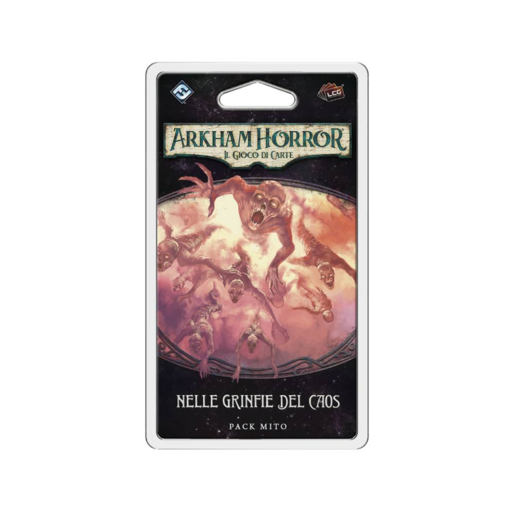 Arkham Horror: Nelle Grinfie Del Caos è il quinto pack mito del ciclo de Il Circolo Spezzato. Nelle Grinfie del Caos contiene lo scenario VII della campagna Il Circolo Spezzato. Mentre tutti i cittadini si rinchiudono in casa voi continuate a investigare per le strade. Provate la nuova meccanica delle brecce facendo in modo di evitare che si moltiplichino e che avvengano delle incursioni. Questo pack contiene 60 carte, comprese nuove carte giocatore ideate per espandere i mazzi esistenti, e un nuovo scenario che può essere giocato in modalità autoconclusiva o come parte della campagna Il Circolo Spezzato. Dopo la vostra investigazione fatale in Unione e Disillusione, lo stato della città continua a decadere. Le crepe nella realtà cominciano a lacerare il tessuto della Terra, e una flebile melodia di tubi discordanti si può sentire per le strade di Arkham. Cittadini spaventati si sono rinchiusi nelle loro case, ma voi continuate a pattugliare le strade, disperati per una soluzione che ponga fine al caos. Nelle Grinfie Del Caos il destino non si accumula al solito tasso. Invece, si aprono crepe in vari luoghi, segnati da gettoni risorsa. Quando abbastanza crepe sono state create in un singolo luogo, si verifica un’incursione. Un’incursione aggiunge il destino al suo luogo e fa sì che le crepe si diffondano, aprendo squarci nella realtà nei luoghi connessi. Il vostro obiettivo è prevenire le incursioni rimuovendo le crepe che le causano, ma ciò può essere fatto solo attivando le abilità d’azione su ciascun luogo. Se non mantenete il controllo sulle crepe, potreste presto trovarvi sopraffatti da Arkham che sprofonda nella follia. Non potete permettere che ciò accada! Questo non è un prodotto autonomo. È necessaria una copia del Set Base di Arkham Horror: Il Gioco di Carte e dell’espansione deluxe Il Circolo Spezzato per poter giocare. Contenuto 60 Carte Sleeves 60 63,5×88