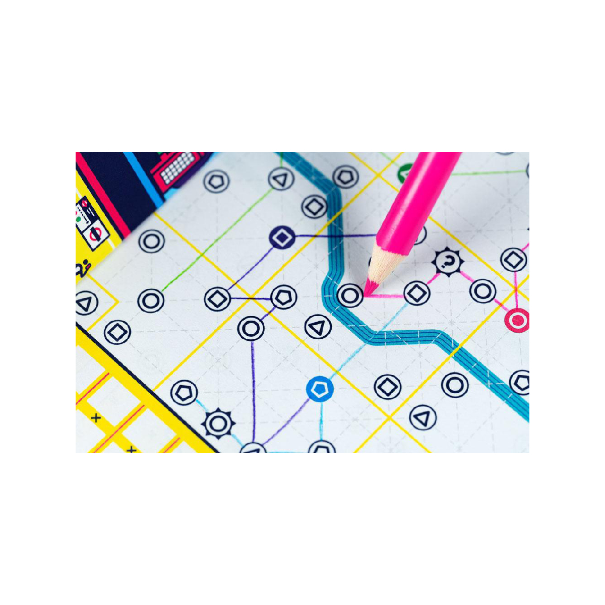 Next Station – London Gioco da Tavolo di Connessioni da Disegnare sulla Metropolitana di Londra! Next Station – London gioco da tavolo per 1-4 giocatori dagli 8 anni in su dalla durata di circa 25 minuti. La città di Londra ti ha commissionato di ridisegnare la sua rete metropolitana! Ottimizza le connessioni, servendo il maggior numero possibile di luoghi d’interesse e sfruttando i tunnel che passano sotto il Tamigi. Presta attenzione a rispettare le specifiche stabilite dalla città. Il gioco in breve: rivela la prossima carta Stazione. Disegna una nuova sezione. Ottimizza le 4 linee della metropolitana. Chi sarà il miglior project manager e metro planner? Se stai cercando il Regolamento di Next Station – London puoi trovarlo in fondo alla pagina. SCOPO DEL GIOCO NEXT STATION – LONDON L’obiettivo del gioco Next Station – London è molto semplice: guadagna più punti possibili ottimizzando le 4 linee Metropolitane della tua mappa di Londra. Per maggiori informazioni sul gioco visita la pagina ufficiale del distributore italiano Ghenos Games! oppure dai un’occhiata alla pagina dedicata al gioco su Bgg! o ancora alla pagina del produttore ufficiale Blue Orange Games! COME SI GIOCA AL GIOCO DA TAVOLO NEXT STATION – LONDON Le regole del gioco Next Station – London sono molto semplici da imparare: una partita a Next Station dura 4 round. In ciascuno di essi dovrai disegnare sulla tua mappa la linea della metropolitana del colore della matita che hai in mano. Al termine della partita avrai disegnato 4 linee della metropolitana di colore diverso. Ogni round è composto dalle seguenti fasi: 1. identificare la fermata di partenza della propria linea della metropolitana; 2. costruire i collegamenti tra le fermate in base alla carta Fermata rivelata; 3. ottenere punti; 4. prepararsi per un nuovo round. Dopo il quarto round, quando tutti i giocatori avranno disegnato una rete di 4 linee di colori differenti, il gioco termina e vince il giocatore con il punteggio maggiore. Davvero non ti basta? Scopri tutti gli articoli disponibili per giochi Next Station! Contenuto 1 Blocchetto con le Mappe di Londra 4 Matite di colori differenti 11 Carte Fermata 5 Carte Obiettivo Comune 4 Carte Potere Matita 1 Regolamento Sleeves 11 55×85 9 60×60