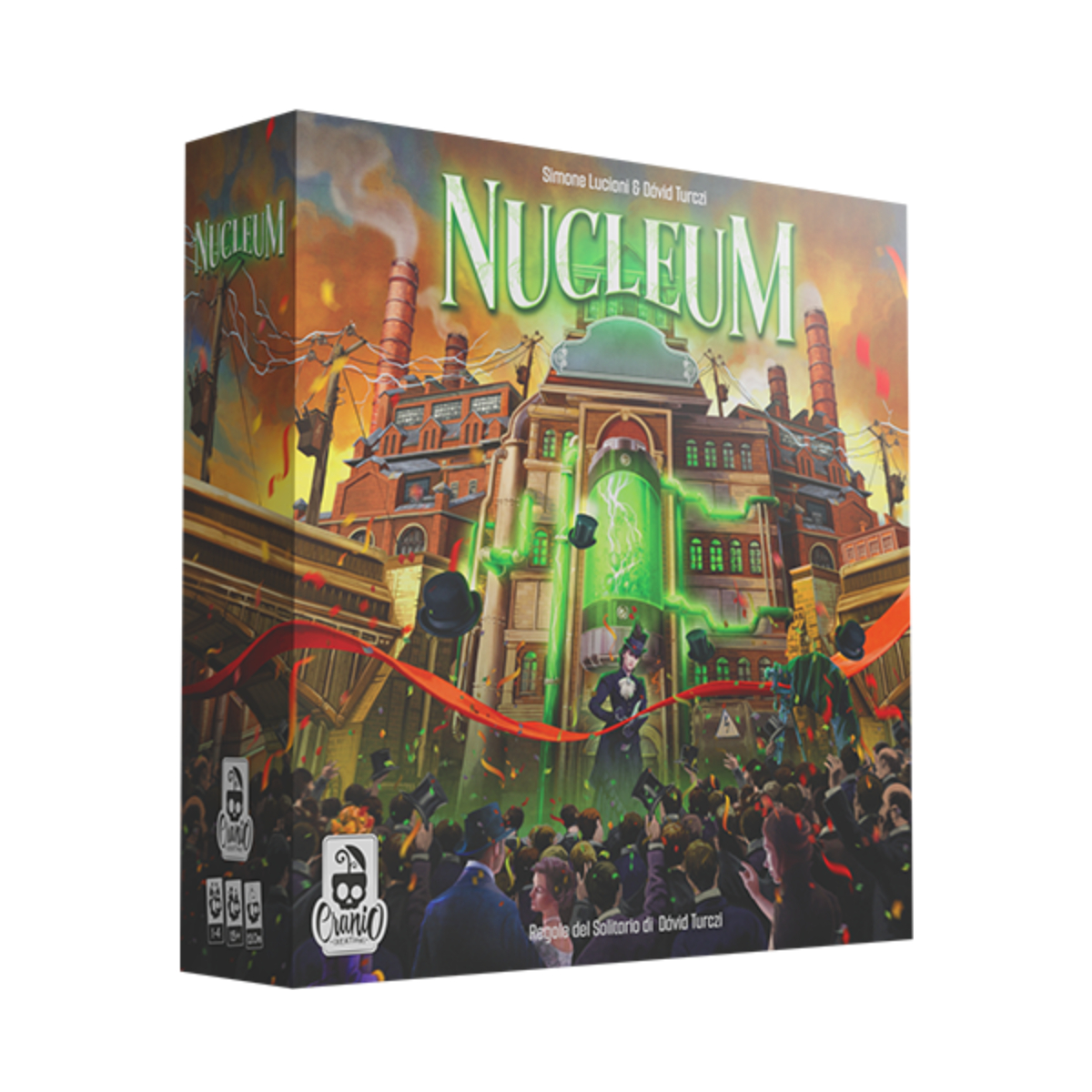 Nucleum Gioco da Tavolo di Piazzamento Tessere e Costruzione Reti sull’Energia Nucleare! Nucleum gioco da tavolo per 1-4 giocatori dai 14 anni in su dalla durata di circa 60-150 minuti. Nucleum è un gioco per esperti di piazzamento tessere e costruzione di reti, che costringe i giocatori ad adeguare continuamente la propria strategia durante la partita. Quando Elsa von Frühlingfeld presentò la sua invenzione al re Federico Augusto II di Sassonia, la gente pensava che fosse un trucco. Utilizzò l’elemento Uranio, recentemente isolato, per riscaldare un barattolo d’acqua e sfruttò il vapore risultante per alimentare un motore che manteneva l’Uranio attivo tramite un processo che chiamava “atomizzazione”. Il suo dispositivo, il Nucleum, inaugurò una nuova era di energia e prosperità nei decenni successivi. La Sassonia passò da una potenza regionale minore all’epicentro della scienza e dell’ingegneria europee. Ora, una generazione dopo, le fabbriche sono ancora affamate di più potenza, chiedendo di costruire Nucleum più grandi e più potenti, importare più Uranio dal vicino paese di Boemia e costruire ferrovie e linee elettriche in tutto il paese per trasportare la potenza domata degli atomi alle grandi città della Sassonia. Inventori, ingegneri e industriali affollano la corte sassone, lottando per essere i leader in questa nuova rivoluzione industriale. Se stai cercando il Regolamento di Nucleum puoi trovarlo in fondo alla pagina. SCOPO DEL GIOCO NUCLEUM Sei un industriale che cerca di avere successo durante il boom economico e tecnologico della Sassonia del XIX secolo, alimentato dall’invenzione e dalla diffusione del Nucleum (che, in un’altra linea temporale, le persone di un altro secolo chiamerebbero reattore nucleare) e dalle sue immense capacità di generazione di energia. Cercherai di guadagnare punti vittoria (PV) costruendo e alimentando Edifici Urbani, assicurando Contratti e raggiungendo traguardi dettati dal re Federico Augusto. Per maggiori informazioni sul gioco visita la pagina ufficiale del distributore italiano Cranio Creations! oppure dai un’occhiata alla pagina dedicata al gioco su Bgg! o ancora alla pagina del produttore ufficiale Board&Dice! COME SI GIOCA AL GIOCO DA TAVOLO NUCLEUM Nucleum è un gioco da tavolo euro pesante nel quale i giocatori assumono il ruolo di industriali che cercano di avere successo durante il boom economico e tecnologico della Sassonia del XIX secolo, alimentato dall’invenzione e dalla diffusione del Nucleum (un reattore nucleare). I giocatori guadagnano punti vittoria sviluppando le loro reti, costruendo e alimentando edifici urbani, assicurando contratti e raggiungendo traguardi (obiettivi finali randomizzati). Ogni giocatore ottiene anche tecnologie asimmetriche uniche, che forniscono loro poteri speciali una volta sbloccate. Il gameplay è continuo: i giocatori si alternano uno dopo l’altro senza turni o fasi. Davvero non ti basta? Scopri tutti gli articoli disponibili per giochi hardcore! Contenuto 2 Regolamenti 4 Aiuti Giocatore 4 Schede Riassuntive Esperimento 1 Tabellone 1 Plancia Laterale 4 Plance Giocatore a doppio strato 4 Schede Esperimenti Oltre 200 tessere e segnalini in cartone Oltre 70 tessere Azione Oltre 60 talleri Oltre 40 segnalini Risultato 28 Carte 72 Segnalini Lavoratore 4 Nucleum in legno decorato 16 Turbine in legno decorato 5 Dischi in legno decorato 24 Cubetti in legno 24 Stelle in legno 12 Cubi in legno 4 Segnalini in legno 5 Figure Centrale Elettrica 1 Dado Sleeves ? In Aggiornamento