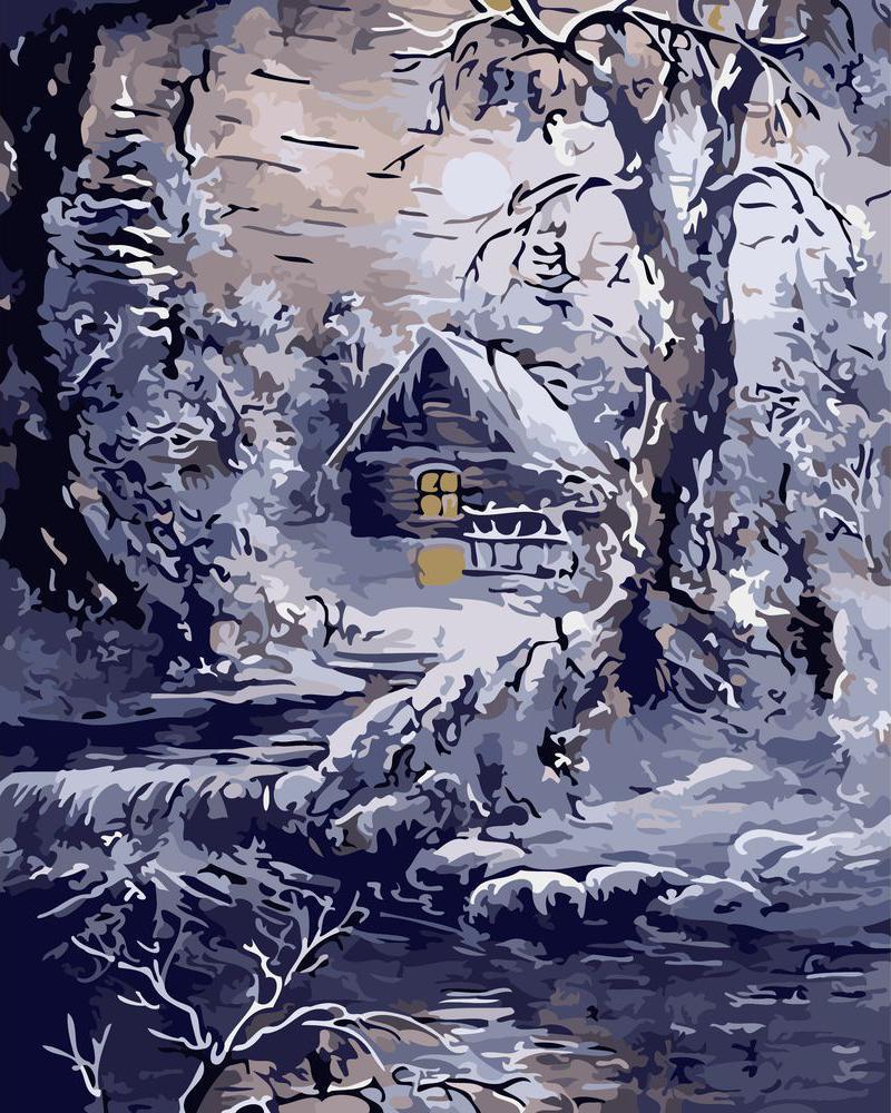 Nel kit RIfugio vicino al torrente in inverno Diamond Painting | Seos Shop ®: