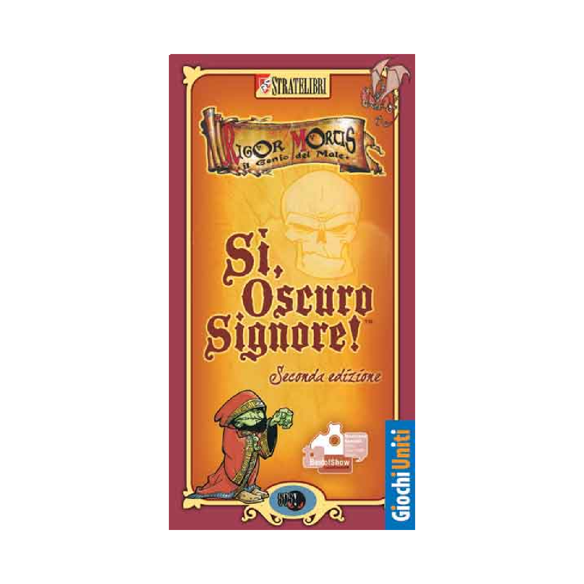 Sì, Oscuro Signore – Set Rosso Gioco di Carte di Ruolo Fantasy con Rigor Mortis! Sì, Oscuro Signore – Set Rosso gioco da tavolo per 4-7 giocatori dagli 8 anni in su dalla durata di circa 20-30 minuti. Sì, Oscuro Signore! è un party game d’ambientazione fantasy dal tono scanzonato ed umoristico, veloce da imparare e facile da giocare. Vestirete i panni dei malvagi ed inetti servitori di Rigor Mortis; dopo l’ennesima missione andata a male dovrete giustificarvi davanti a lui inventando storie improbabili e scaricando la colpa sugli altri giocatori. Il set base rosso di Sì, Oscuro Signore! è un gioco completo che può essere giocato singolarmente oppure in combinazione con altri set base per creare un unico grande gioco, con nuovi modi di scaricare la colpa e un’enorme quantità di nuove e bellissime carte spunto! Sì, Oscuro Signore! – Scatola Rossa è il nome più recente di questo gioco, per distinguerlo dalla Scatola Verde, che è sia un gioco autonomo che un’espansione per questo. Se stai cercando il Regolamento di Sì, Oscuro Signore – Set Rosso puoi trovarlo in fondo alla pagina. SCOPO DEL GIOCO SI OSCURO SIGNORE SET ROSSO Il gioco di ruolo Sì, Oscuro Signore! si basa su bugie e scaricare la colpa sui tuoi poveri compagni, così che l’ira giusta del tuo Maestro possa dar loro ciò che meritano! Per maggiori informazioni sul gioco visita la pagina ufficiale del produttore italiano Pendragon Games! oppure dai un’occhiata alla pagina dedicata al gioco su Bgg! COME SI GIOCA AL GIOCO DA TAVOLO SI OSCURO SIGNORE ROSSO Le regole del gioco Sì, Oscuro Signore! sono facili e veloci da imparare: “Sei di ritorno alla tenebrosa Torre dell’Oscura Stregoneria, dopo un’altra missione andata male. Sua Eccellenza, il Lord delle Terre Perdute, non ne sarà certo compiaciuto! Presto sarai dinanzi al Suo cospetto, e Lui ti interrogherà su questo ennesimo fallimento. Racconta panzane! Scarica la Colpa! Salvati dall’ira del Genio del Male!” Ogni giocatore è un malvagio servo gobbo del malvagio Oscuro Signore – Rigor Mortis, il Maestro di tutti i Mali – e tutti loro sono riuniti ai piedi del Dark Overlord per spiegare perché hanno fallito l’ultima importante missione, ordinata dallo stesso “Sua Malvagia Eccellenza”. Il panico ti avvolge con la sua stretta gelida; cosa puoi fare per salvare la tua pelle? Potresti dire che non sei tu il responsabile, ma i tuoi compagni inerti? Sì, certo, è la soluzione! C’è solo un piccolo problema: probabilmente hanno esattamente la stessa idea… e il Dark Overlord non è noto per la sua misericordia…evita le occhiatacce accampando le scuse più improbabili suggerite dalle carte che hai in mano e convinci il Signore Oscuro della tua innocenza scaricando la colpa sui tuoi compagni di sventura… Davvero non ti basta? Scopri tutti gli articoli disponibili per giochi Sì, Oscuro Signore! Contenuto 165 Carte 1 Regolamento Sleeves 165 56×87