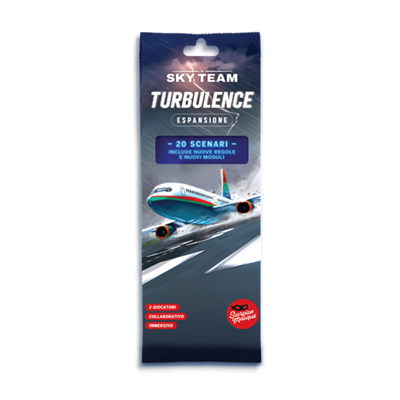 Un’espansione elettrizzante! Piloti, i cieli sono stati piuttosto clementi finora, ma la situazione si sta facendo un po’ traballante, nebulosa e decisamente preoccupante. Visiterete anche aeroporti nuovi e più impegnativi. Avete sentito quello scossone? O forse sono le vostre mani a tremare? Benvenuti a Sky Team Turbulence. Questa è un’espansione del gioco base Sky Team che offre nuovi moduli e nuovi scenari per nuove destinazioni. Include 20 scenari con nuove regole e nuovi moduli. Contenuto: 10 Indicatori di Avvicinamento, 2 Indicatori di Altitudine, 1 plancia Allarme, 6 segnalini Allarme, 6 segnalini Pinguino, 2 Interruttori (in caso ne abbiate perso qualcuno_!), 1 Libretto di Istruzioni.