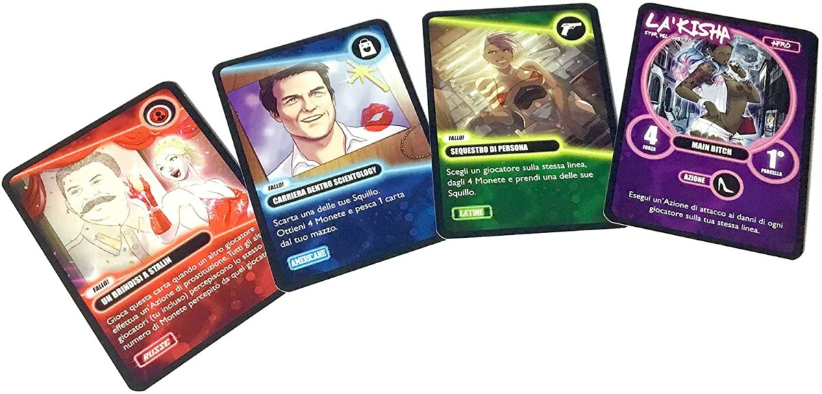 IL GIOCO DI CARTE SATIRICO PIU’ VENDUTO IN ITALIA RITORNA (COME L’HERPES) IN UNA VERSIONE ANCORA PIU’ CATTIVA E SPREGIUDICATA.La città di Milangeles fa da sfondo ad una lotta per il potere, tra sesso e stereotipi culturali. In Squillo City ogni giocatore prende il controllo di una fazione, scegliendo tra Russe, Asiatiche, Afro, Americane e Latine, e si sposta nella città per condurre business illegali, vendersi sulla strada o eliminare la concorrenza. Due game designer, cinque illustratori e un regolamento completamente rivisto per un’ orgia apocalittica di HUMOR NERO. Contenuto 1 Regolamento 25 Carte Mercato 70 Carte etniche 5 Carte salvadanaio 80 Monete 6 Pedine 1 Tabellone Sleeves 95 63,5×88 #text-4178071945 { font-size: 1.75rem; text-align: center; } Gameplay e Regolamento