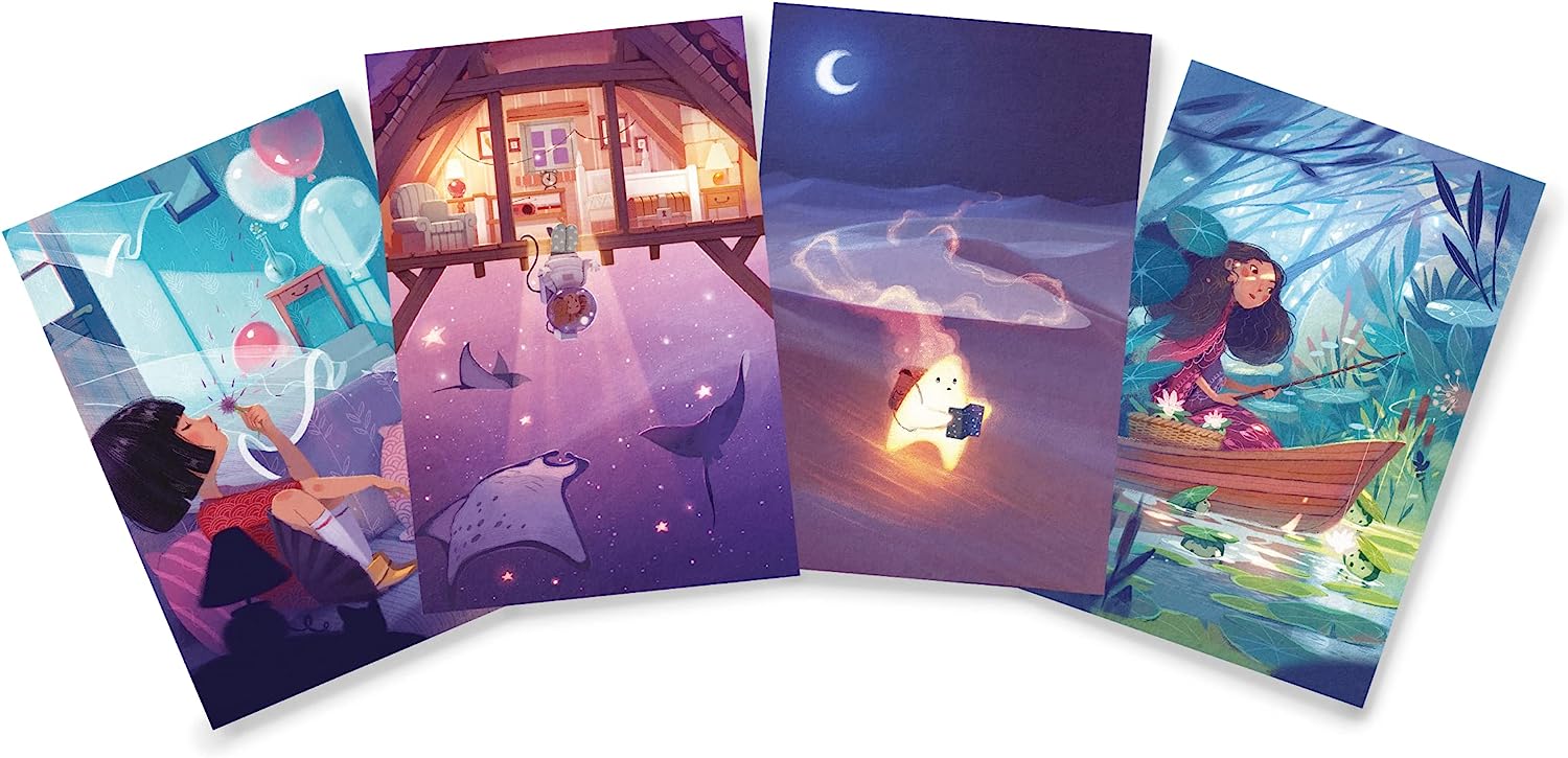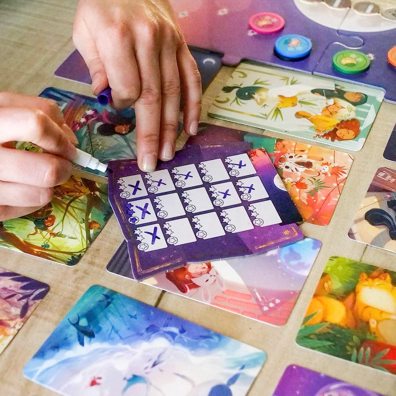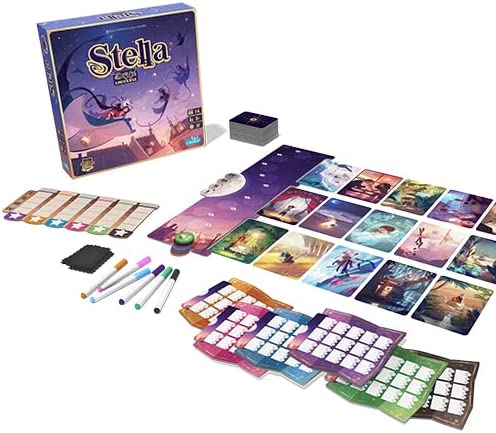 - 100% compatibile con Dixit (le carte hanno lo stesso retro e possono essere utilizzate con le regole di Dixit, così come le carte di Dixit possono essere utilizzate per giocare a Dixit Stella!)