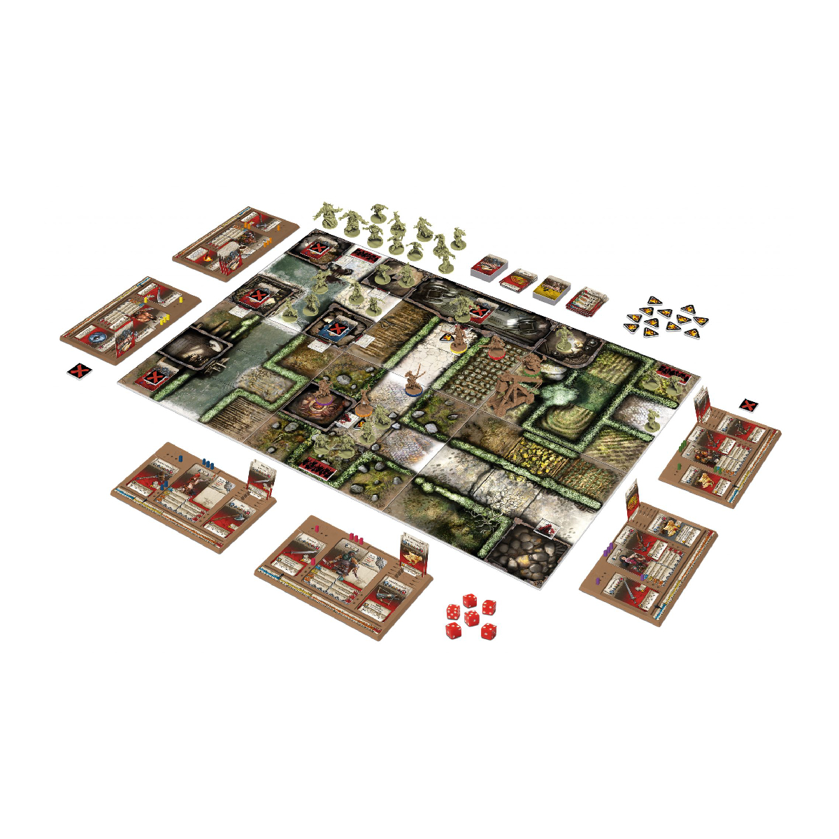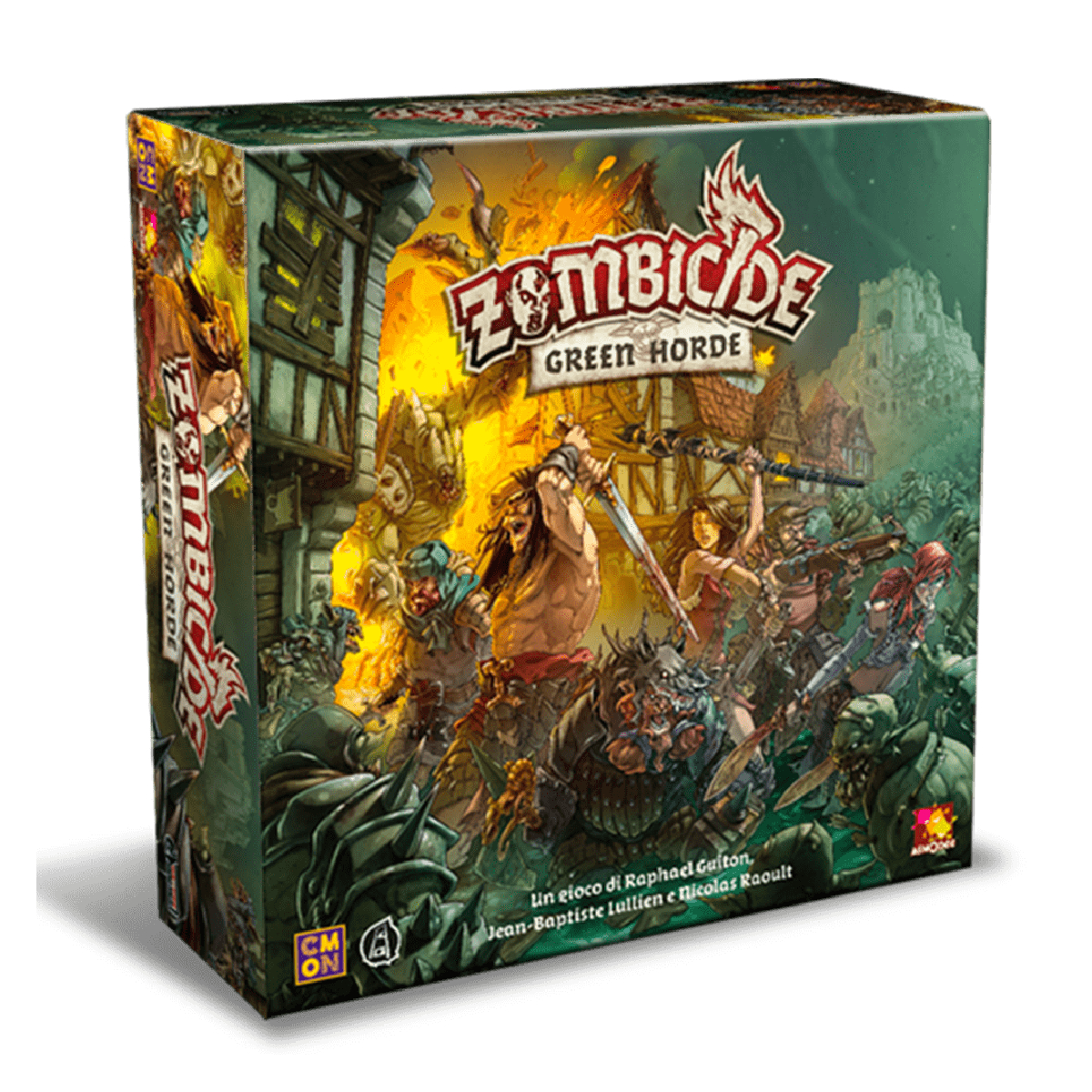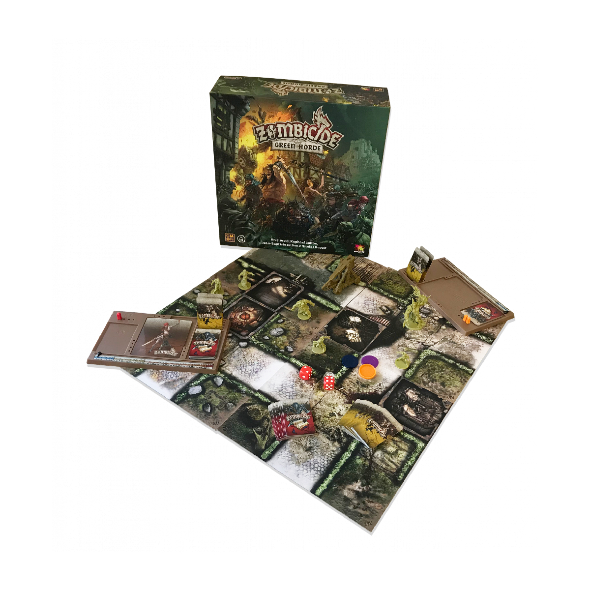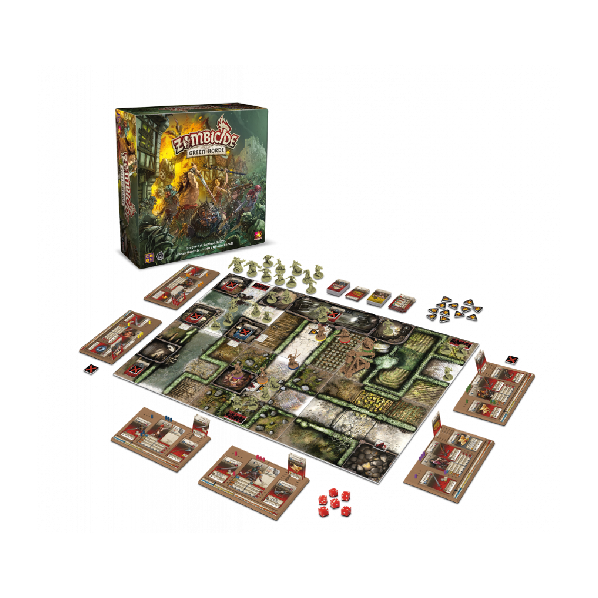 Zombicide Green Horde gioco cooperativo fine a sei giocatori a scenari in cui controllerete un gruppo di sopravvissuti in un’ambientazione fantasy medievale e combatterete per liberare la terra da un’invasione di orchi zombie, controllata dal gioco stesso. Il gioco Green Horde sequel di Zombicide Black Plague riporterà i giocatori in un mondo di mortale fantasia medievale, questa volta pieno di orchi e goblin infetti che metteranno alla prova gli sopravvissuti. Questa minaccia verde non solo è più forte dei loro simili umani, ma tende anche a riunirsi in masse enormi che tendono agguati agli sopravvissuti quando meno se lo aspettano. LINEA FANTASY ZOMBICIDE Il contagio degli zombie è inarrestabile! Ora anche i nostri vecchi nemici Orchi sono caduti. Questa non è più una lotta tra noi e loro: è una lotta tra la vita e la morte! Gli Orchi zombie hanno attraversato il confine e hanno formato un’orda verde determinata a trascinare il mondo verso la fine! Ma ai loro oscuri padroni, i necromanti, è sfuggito qualcosa nell’esecuzione del loro piano malvagio: voi! Il vostro gruppo di determinati sopravvissuti non ha nessuna intenzione di fuggire di fronte alla morte. Unite le forze, impugnate le armi e respingete l’orda senza mostrare pietà! Imbracciate le balestre, affilate le vostre asce migliori e preparate i vostri incantesimi fiammeggianti: per i pochi, per i coraggiosi, questa è l’ora di Zombicide Green Horde! Nel gioco da tavolo Zombicide Green Horde forma una squadra fantasy assieme ai tuoi amici e sfrutta le tue abilità e il lavoro di squadra per trionfare contro le orde degli orchi contagiati! Gli zombie sono controllati dal gioco stesso, usando delle semplici regole e un mazzo di carte. Gioca 10 missioni su 10 mappe diverse predisposte mediante le apposite tessere modulari incluse, o crea le tue missioni personali. Trova le armi e uccidi gli zombie. Più zombie uccidi, più diventi abile… e più diventi abile, più zombie compaiono! Zombicide Green Horde gioco indipendente che prevede un’ambientazione fantasy, così come Zombicide Black Plague, con cui è perfettamente compatibile! Preferite un’ambientazione urbana? Giocate con Zombicide 2a Edizione. Se invece preferite avventurarvi nel futuro con la linea fantascientifica, Zombicide Invader è quel che fa per voi! In questo gioco Zombicide Orchi ambientato nella stessa era medievale di Black Plague, i giocatori assumeranno il ruolo di Sopravvissuti desiderosi di sconfiggere la minaccia di non morti che si muove barcollante, in qualsiasi modo possibile. Il Medioevo di Zombicide Green Horde gioco da tavolo ti permette di affrontare non sono solo zombie umani, sono orchi zombie! I Sopravvissuti dovranno equipaggiarsi con una vasta gamma di attrezzature medievali se sperano di resistere a questi formidabili nemici. Gli Orchi Zombie sono più forti del classico zombie e rappresentano una sfida più impegnativa anche per i veterani cacciatori di non morti. Con nuovi avversari così minacciosi, i Sopravvissuti avranno le mani piene a fronteggiare la Green Horde. Fortunatamente, avranno anche alcune nuove armi e incantesimi dalla loro parte per combattere le masse marcescenti. Cose come il Lava Burst, la Norse Sword e il Bone Kukri saranno tutte utili quando si taglia attraverso una folla di non morti. Oh, e se dovessero radunarsi troppo strettamente, i Sopravvissuti possono sempre colpirli con la catapult…(non l’abbiamo menzionata prima?). Le regole classiche di Zombicide sono state rivisitate per questa nuova incarnazione del gioco, mantenendo comunque l’azione incessante, l’atmosfera tesa e le regole facili da imparare che hanno reso Zombicide un classico. Equipaggia il tuo sopravvissuto con armature come maglie di catena o scudi per difendersi dagli non morti, prendi libri degli incantesimi per eseguire incantesimi fantastici o accendi una pozza di bile di drago per creare un inferno divoratore di fuoco da drago! Il gioco da tavolo Zombicide Green Horde include dieci nuove missioni impegnative, con alcuni degli scenari più difficili che un Sopravvissuto abbia mai dovuto affrontare. Con nuovi terreni, come cornici e pozze d’acqua, e la costante minaccia della comparsa della Green Horde, il team dovrà pianificare con attenzione i loro percorsi. A volte evitare guai è meglio che affrontarli di petto! ZZombicide Green Horde è il prossimo capitolo nel mondo in continua evoluzione di Zombicide. Non c’è riposo per i Sopravvissuti se sperano di lottare per una nuova speranza e un nuovo inizio. Se volete, potete mescolare alcuni materiali delle due linee di Zombicide per creare la vostra ambientazione personale (qualcuno ha parlato di “bastoni tonanti”?). Tuttavia, molte regole sono cambiate per impartire a Zombicide Black Plague un gusto speciale! SCOPO DEL GIOCO ZOMBICIDE GREEN HORDE Lo scopo del gioco Zombicide Green Horde è semplicemente quello di completare gli obiettivi della Missione, sopravvivere e uccidere il maggior numero possibile di Zombie! Una nuova sfida per i Sopravvissuti è la Folla. Rappresenta un gruppo crescente di zombie orchi pronti a entrare nel tabellone in un luogo inaspettato e tendere un’imboscata ai Sopravvissuti. Quando vengono pescate carte zombie con il simbolo della Folla, un ulteriore miniatura di zombie dello stesso tipo viene messa da parte, formando collettivamente la Folla. Saranno bloccati sul posto fino a quando non verrà pescata una carta “Entrate nella Folla!”, facendo apparire la Folla sul tabellone. Qualsiasi Sopravvissuto sorpreso da solo vicino a questa minaccia ambulante farebbe meglio a fare una veloce ritirata. I Sopravvissuti possono scambiarsi equipaggiamento e i giocatori possono definire una tattica comune. Soltanto tramite la collaborazione sarà possibile portare a termine gli obiettivi della Missione e sopravvivere. Combattere gli Zombie è divertente, ma sarà necessario anche salvare gli altri Sopravvissuti, trovare cibo e armi, scop